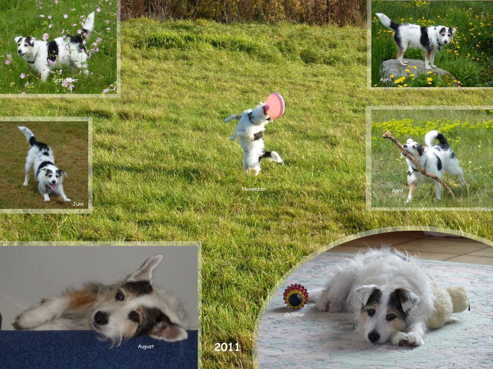 Twelve composite pictures showing Bobby growing up through the years