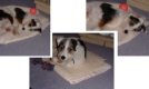 Bob's fluffy blanket was his first 'posession'. It was used to line his bed and he knew that wherever it was put down was 'his' sanctuary. He still has it and he still uses it as his space wherever it is placed down. |