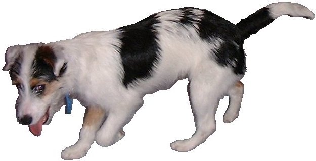 Here Bob is waiting to be let in at the back door. Already he was showing what a good and patient boy he was. Instead of making a fuss with barking or scratching he would just sit there until someone let him in. Fortunately this good and patient characteristic has stayed with him as he has grown. |