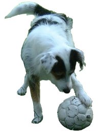 Throughout the summer Bob was always on hand to help with cutting the grass. His version was to drop the ball in the path of the mower so that it had to be kicked out of the way as many times as he could get away with. Of course this meant running across the newly mown bits time and time again. Bob didn't just restrict himself to mowing and all outside jobs were accompanied by lots of opportunity to throw the ball for him - no wonder everything took three times as long as it should (apart from playing with Bob of course). |
