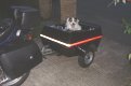 A quick check at the beginning of the year showed that, small as he is, Bob was not going to be able to travel in a modified tank bag - not if I was going to able to see the controls as well. Plan 'B' took a little longer to get ready. The trailer has been simply modified by removing the lid, putting in a bag of sand to steady the ride, and a carpet for comfort, plus an anchor point for a harness. We only managed a few short trips before the change of clocks plunged us into darkness in the evenings but he really seemed to enjoy having his head in the wind as we travelled. We’ll carry on the modifications in the spring and hopefully he’ll be happy to come along on the bike for some of our summer outings.