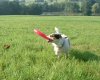 Also to come from the Pyrenean Mountain Dog Club fun day, as a raffle prize, is Bob's most favourite toy ever. He already had one frisbee which was his former favourite but this one is somehow far better. |