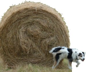 Snow: Here Bob is showing how to make a snowball pendant with just the aid of the tag on his collar and a field full of snow. |