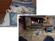 Sermages: Sally and Tilly are the incumbents while Blue is the new puppy. Or at least he was in these pictures. He was just a few weeks old when we met him the first time. Next time he was virtually full sized. He has a 'friendly' rivalry with Bob where each of them want whatever toy the other one has. If either of them take their eye off the current toy for a moment then it is slyly taken by the other. |
