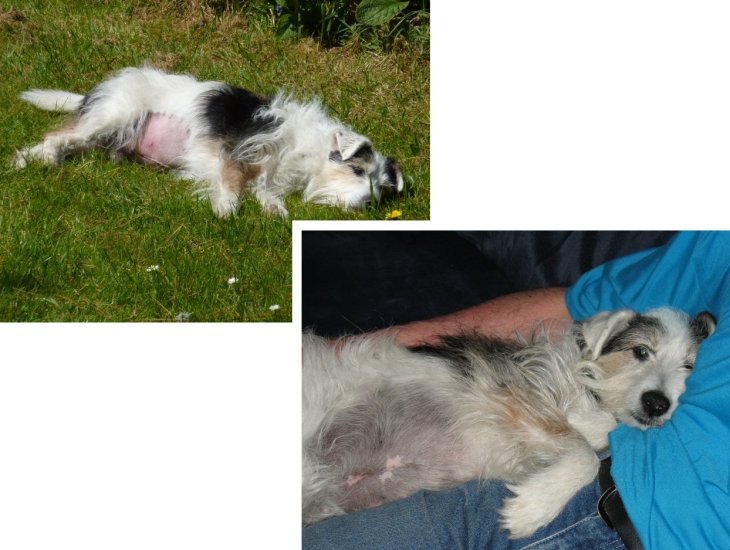 Operation and illness: One day in May we gave Bob a bone. Nothing new there - he has had them since he was a puppy and he normally chews the remaining meat and then goes and buries the bone (for Anne to find and throw away months later). However, this time he crunched up and ate the bone too. As it transpires that shouldn’t have been too bad in itself, as he had chewed it into passable sized pieces. Unfortunately, when he had his evening meal a few hours later he ate it so quickly that it packed the remaining pieces of bone to the back of his stomach and compacted them together into one solid lump.