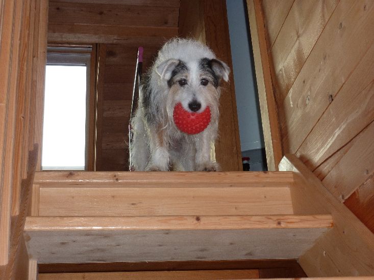 This one is not one of Bob's toys. It is a pilates ball that he found while we were visiting friends. He had to give it back even though it looked like a dog toy!